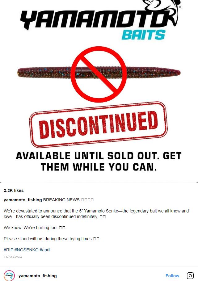 YOU HEAR??? THE 5 INCH SENKO HAS BEEN DISCONTINUED.
